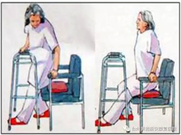 从坐位起立时,向椅子的边缘滑动,然后用助步架或拐杖支撑站起。