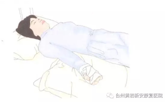 早期平卧、髋外展30°,双膝间放枕,防止髋关节内收。穿丁字鞋,防止髋关节外旋。抬高患肢,并嘱病人开始进行下肢肌肉主动收缩,帮助消肿,促进下肢血液回流,防止深静脉血栓形成。