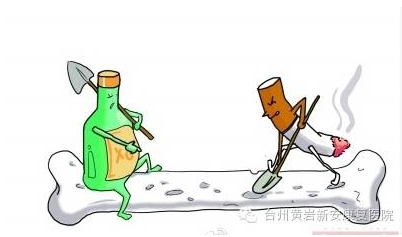6、吸烟:吸烟是一个特殊因素。吸烟危害骨健康的机制可能与烟草中的烟碱能增加骨吸收、抑制骨形成有关。若每天吸20支烟,25~30年后骨量就会下降8%~10% 。